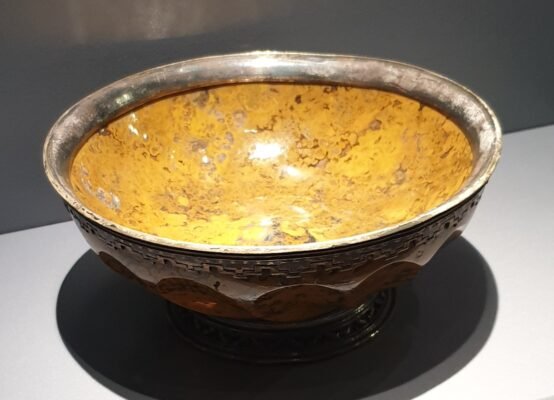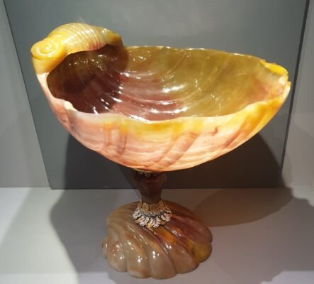 Coupe en jaspe calcédoine et bronze XVe siècle